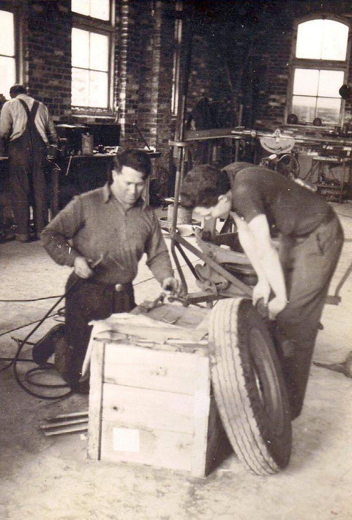 As the demand for the machine shop grew the business had the need to expand. The brothers acquired a lot on the northeast corner of Union and Water St. With the help of employees and friends they built the brick structure from the ground up with the recycled remains of what was likely the Kilburn Mill. The project was completed in December of 1937. A brass propeller was mounted on the upper corner of the building.